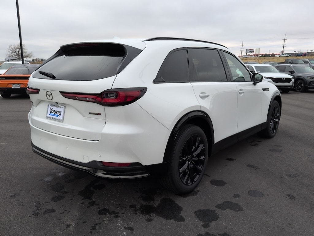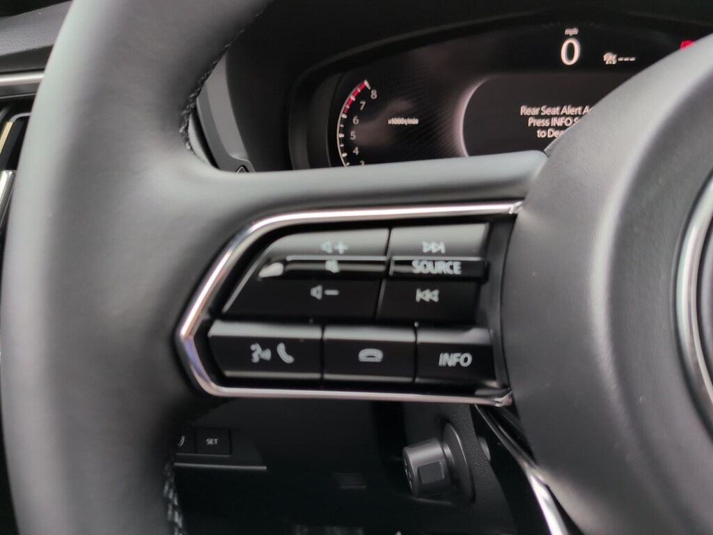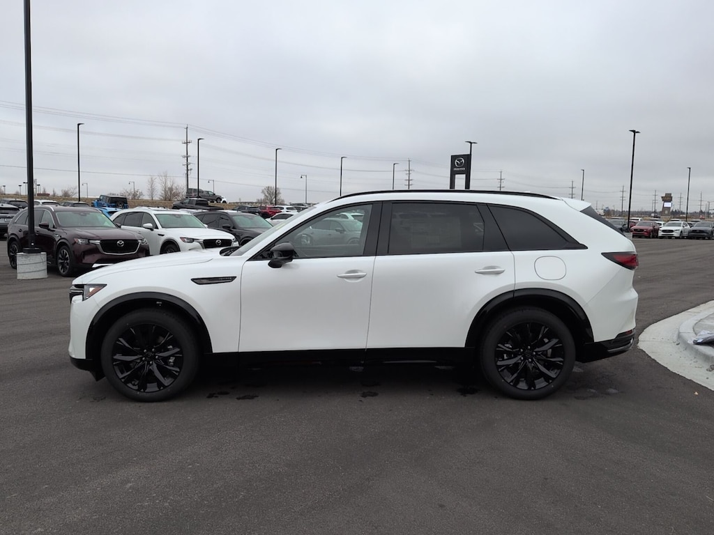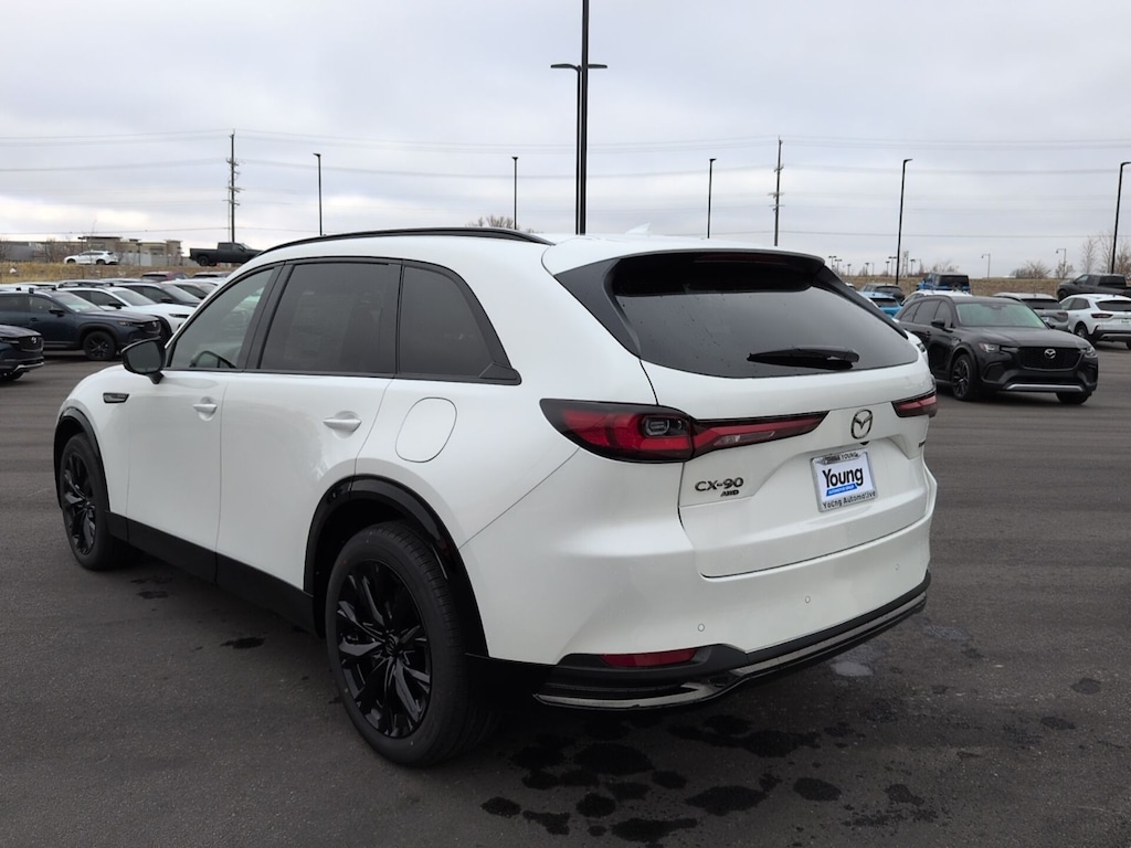 Rhodium White Premium 2026 Mazda CX-90 3.3 Turbo S Premium AWD 8-Speed Automatic I6 Turbo ABS brakes, Active Cruise Control, Alloy wheels, Compass, Electronic Stability Control, Front dual zone A/C, Heated door mirrors, Heated front seats, Heated rear seats, Heated/Ventilated Front Bucket Seats, Illuminated entry, Low tire pressure warning, Nappa Leather Seat Trim, Navigation System, Power Liftgate, Power moonroof, Remote keyless entry, Traction control. 23/28 City/Highway MPG