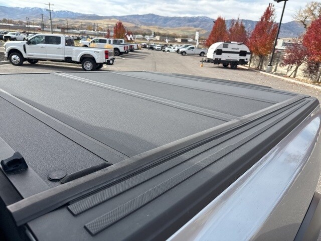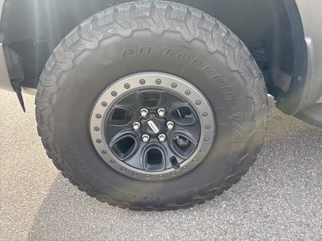 Advanced off-road suspension and terrain-ready components: 5-link rear suspension with coil springs and a Panhard rod, sport-tuned FOX shock absorbers, and the option for 37-inch all-terrain tires. Premium interior amenities: 12-inch touchscreen infotainment, leather-trim seating with heated/ventilated front seats, multiple driving modes including off-road presets. Bold exterior styling: Large FORD grille lettering, muscular fender flares, and aggressive stance that clearly sets this apart from standard trucks.