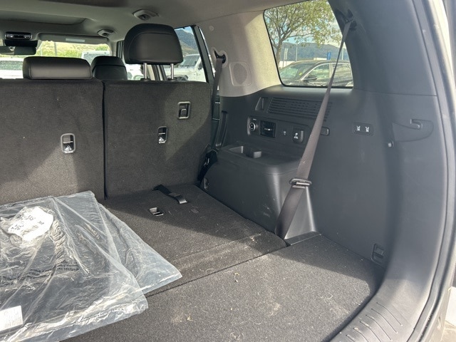 Option Group 01, 12 Speakers, 3rd row seats: bench, 4-Wheel Disc Brakes, ABS brakes, Air Conditioning, Alloy wheels, AM/FM radio: SiriusXM, Apple CarPlay & Android Auto, Auto High-beam Headlights, Auto-dimming Rear-View mirror, Automatic temperature control, Brake assist, Bumpers: body-color, Cargo Net, Cargo Tray, Carpeted Floor Mats, Cross Rails, Delay-off headlights, Driver door bin, Driver vanity mirror, Dual front impact airbags, Dual front side impact airbags, Electronic Stability Control, Emergency communication system, Exterior Parking Camera Rear, First Aid Kit, Four wheel independent suspension, Front anti-roll bar, Front Bucket Seats, Front Center Armrest, Front dual zone A/C, Front reading lights, Fully automatic headlights, Garage door transmitter: HomeLink, Heated & Ventilated Front Bucket Seats, Heated door mirrors, Heated front seats, Heated rear seats, Heated steering wheel, Illuminated entry, Knee airbag, Leather Seat Trim, Leather steering wheel, Low tire pressure warning, Memory seat, Navigation System, Occupant sensing airbag, Outside temperature display, Overhead airbag, Overhead console, Panic alarm, Passenger door bin, Passenger vanity mirror, Power door mirrors, Power driver seat, Power Liftgate, Power moonroof, Power passenger seat, Power steering, Power windows, Radio: AM/FM/HD Bose Premium Audio System, Rain sensing wipers, Rear anti-roll bar, Rear seat center armrest, Rear side impact airbag, Rear window defroster, Rear window wiper, Remote keyless entry, Roadside Assistance Kit, Security system, Speed control, Speed-sensing steering, Split folding rear seat, Spoiler, Steering wheel mounted audio controls, Tachometer, Telescoping steering wheel, Tilt steering wheel, Traction control, Trip computer, Turn signal indicator mirrors, Variably intermittent wipers, Ventilated front seats, and Wheels: 20" x 8.5J Alloy.