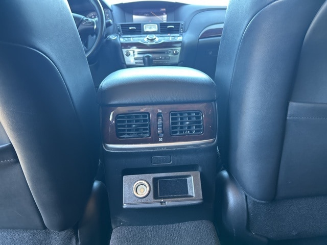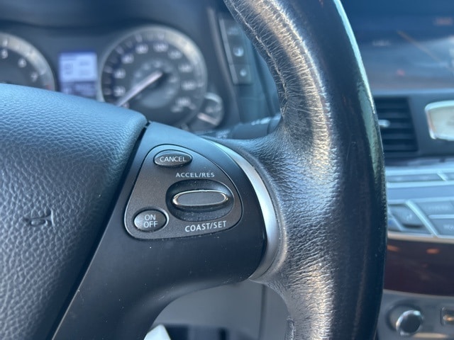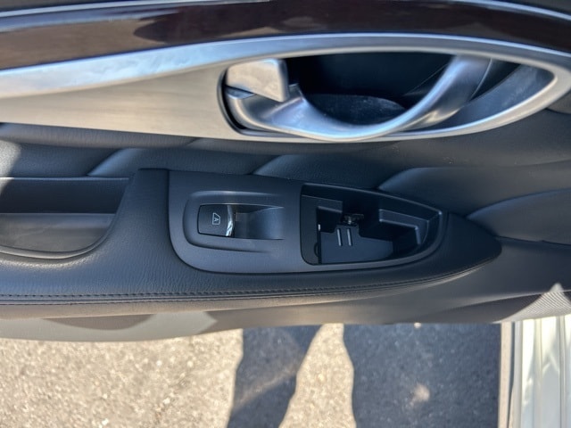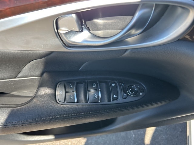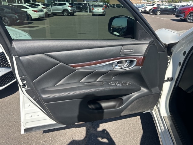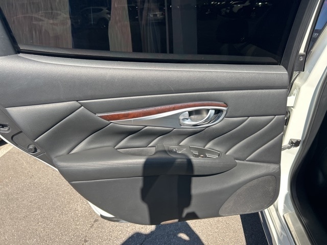 Premium Package (Around View Monitor w/Moving Object Detection, Bose 2-Channel 10 -Speaker Premium Audio System, Climate-Controlled Front Seats, Heated Steering Wheel, INFINITI Connection System, INFINITI Voice Recognition for Audio, Leather Appointed Seat Trim, Radio: INFINITI Hard Drive Navigation System, and Rear Sonar System), 18" Aluminum Alloy Wheels, 4-Wheel Disc Brakes, 6 Speakers, ABS brakes, Activation Disclaimer, Air Conditioning, Alloy wheels, AM/FM radio: SiriusXM, Anti-whiplash front head restraints, Audio memory, Auto tilt-away steering wheel, Auto-dimming door mirrors, Auto-dimming Rear-View mirror, Automatic temperature control, Brake assist, Bumpers: body-color, Carpeted Trunk Mat/Cargo Net & First Aid Kit, CD player, Delay-off headlights, Door auto-latch, Driver door bin, Driver vanity mirror, Dual front impact airbags, Dual front side impact airbags, Electronic Stability Control, Four wheel independent suspension, Front anti-roll bar, Front Bucket Seats, Front Center Armrest w/Storage, Front dual zone A/C, Front fog lights, Front reading lights, Fully automatic headlights, Garage door transmitter: HomeLink, Genuine wood console insert, Genuine wood dashboard insert, Genuine wood door panel insert, Heated door mirrors, Heated Front Bucket Seats, Heated front seats, Illuminated entry, Illuminated Kick Plates, Leather Shift Knob, Leather steering wheel, Leatherette Seat Trim, Literature Kit, Low tire pressure warning, Memory seat, MP3 decoder, Occupant sensing airbag, Outside temperature display, Overhead airbag, Overhead console, Panic alarm, Passenger door bin, Passenger vanity mirror, Pearl Paint, Power door mirrors, Power driver seat, Power moonroof, Power passenger seat, Power steering, Power windows, Radio data system, Radio: AM/FM/CD/MP3 Playback Capability, Rain sensing wipers, Rear anti-roll bar, Rear reading lights, Rear seat center armrest, Rear window defroster, Remote keyless entry, Security system, Speed control, Speed-sensing steering, Splash Guards (Set of 4), Steering wheel memory, Steering wheel mounted audio controls, Tachometer, Telescoping steering wheel, Tilt steering wheel, Traction control, Trip computer, Turn signal indicator mirrors, and Variably intermittent wipers.